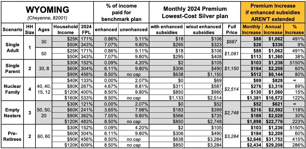That's the macro level, however. As I did a couple of years ago when the subsidies were originally at risk of expiring in 2023, I decided to run the numbers myself to get an idea of just how much enrollees real-world health insurance premiums would go up in the event the ARPA/IRA subsidies are indeed allowed to expire at the end of next year.