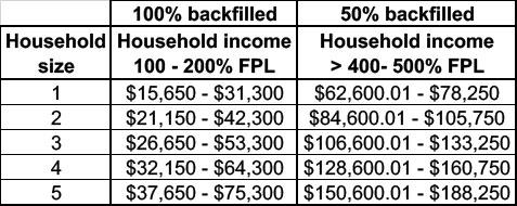 The bottom line is that Connecticut enrollees who earn between 100 - 200% of the Federal Poverty Level (FPL) will have 100% of the lost federal tax credits backfilled, while enrollees who earn between 400 - 500% FPL will have half (50%) of their lost subsidies covered: