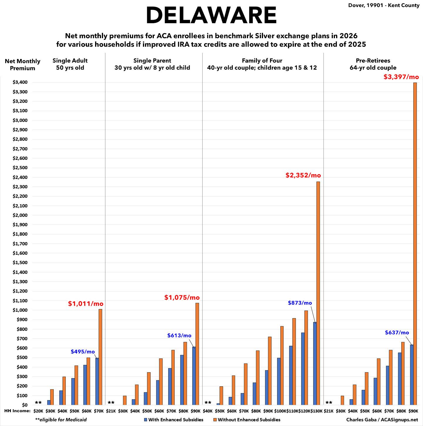 How much more will ~52,000 DELAWARE residents pay if the improved #ACA subsidies expire? (updated)