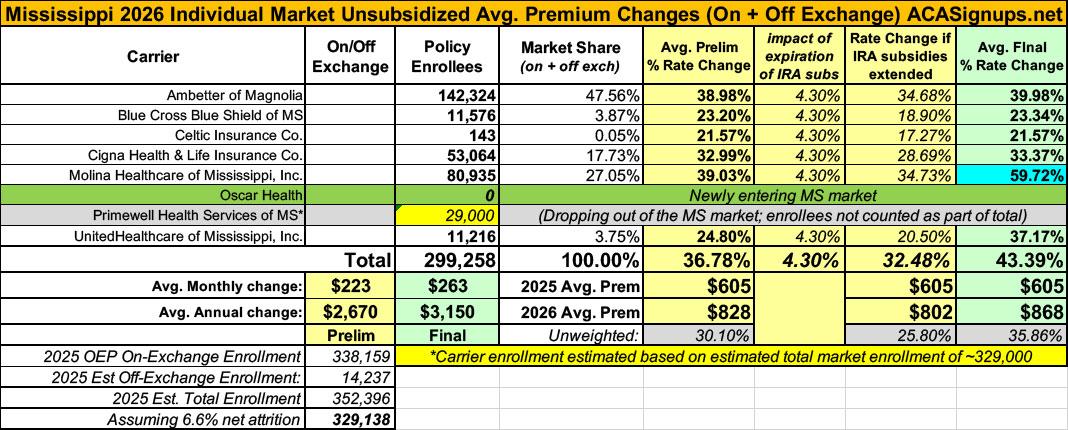 In Mississippi specifically, all of this will result in average gross premiums hikes of 43.4%.