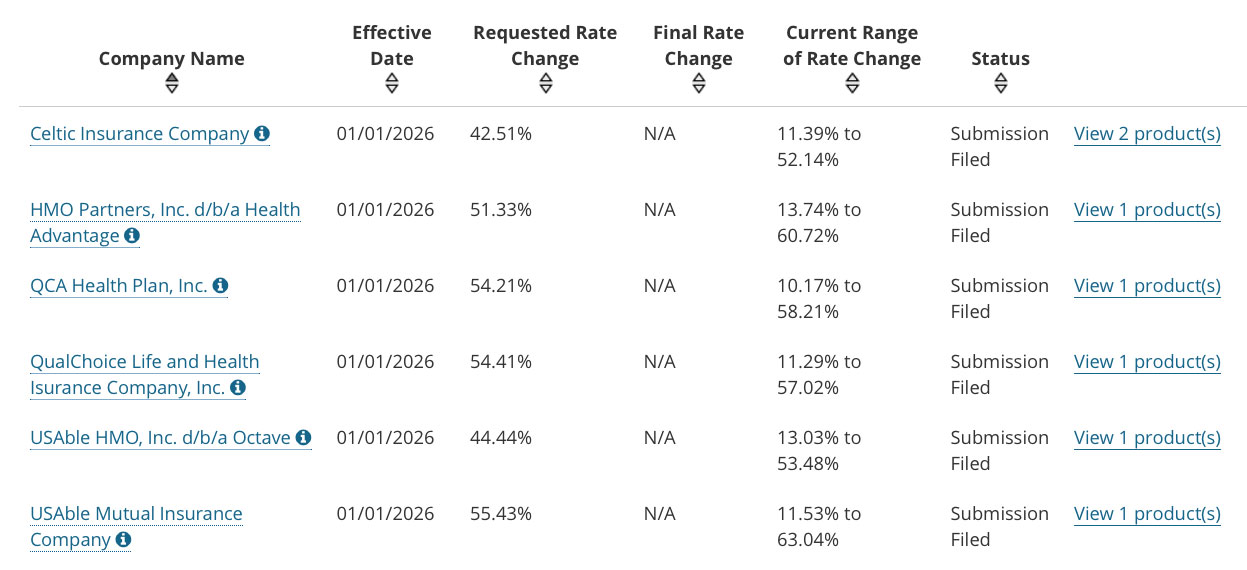 ...Cut to a few weeks ago, when I reported that a local reporter, Benjamin Hardy, had used FOIA requests to acquire internal email correspondence within the AR Insurance Dept. & Commerce Dept. showing that the state plans on responding to the impending expiration of the enhanced ACA premium tax credits in a very positive way: By implementing a robust Premium Alignment policy to maximize the effectiveness of the remaining federal subsidies...