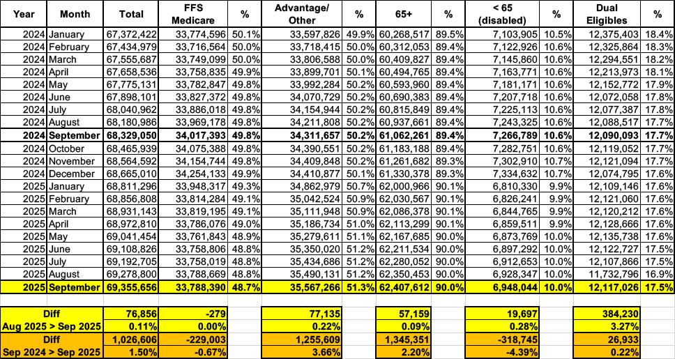 The Centers for Medicare & Medicaid Services just published updated enrollment data for Medicare, adding September 2025 to the data archive.