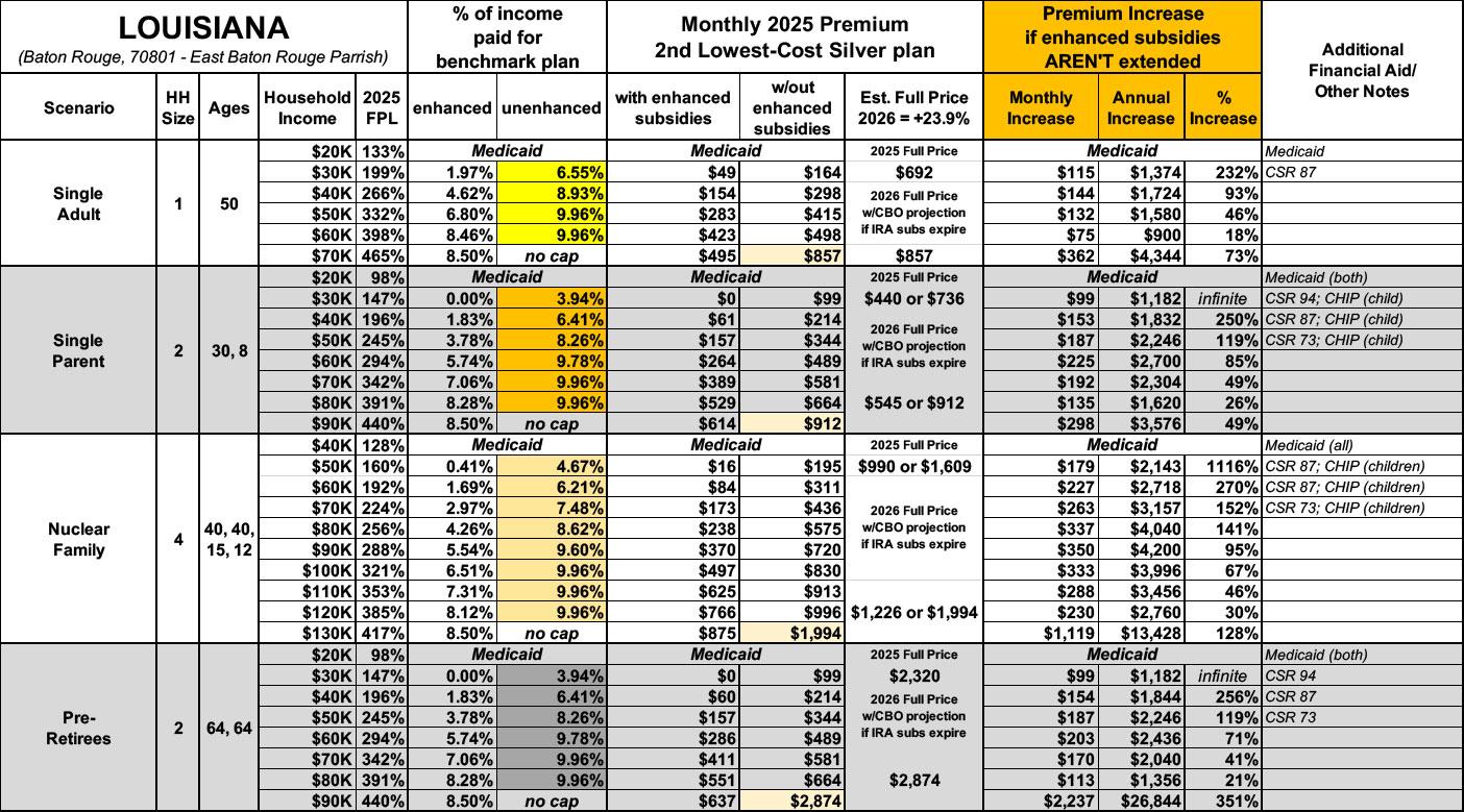 I decided to run the numbers myself to get an idea of just how much the combination of expiring IRA subsidies and the CMS "Affordability/Integrity Rule" will cause net premiums to increase starting in January 2026.